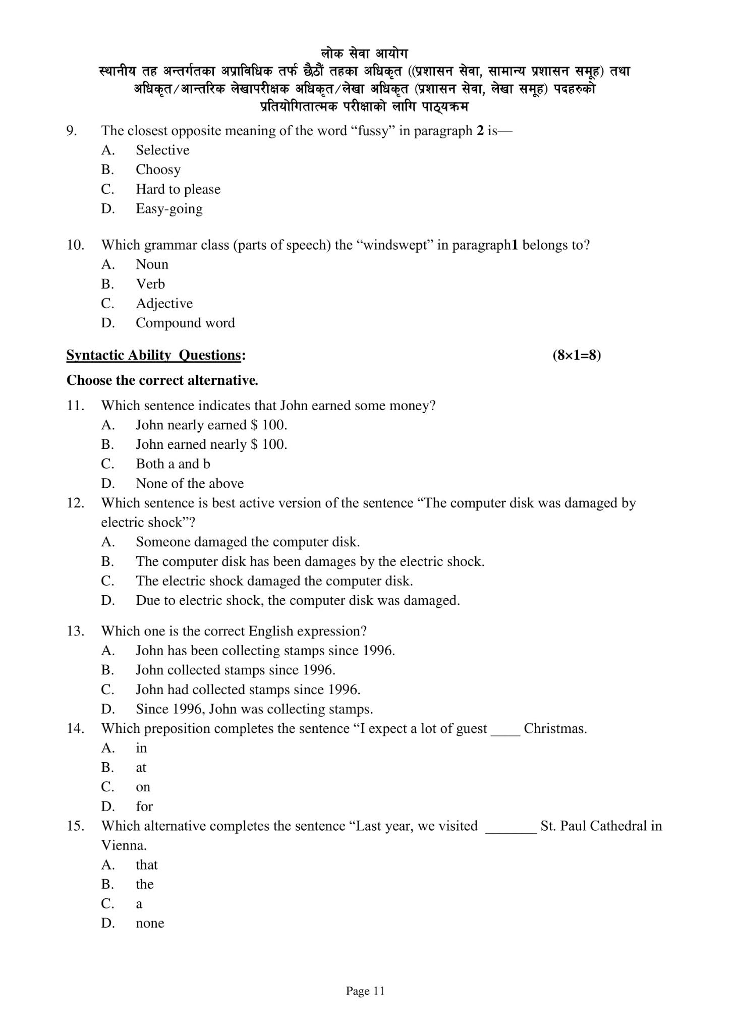 On Section Officer post for Center Level (संघ) there is still fourth paper. But the fourth paper is not like as previous. New Fourth Paper is changed as you check it from below attachment or downloading new syllabus in pdf format.:
